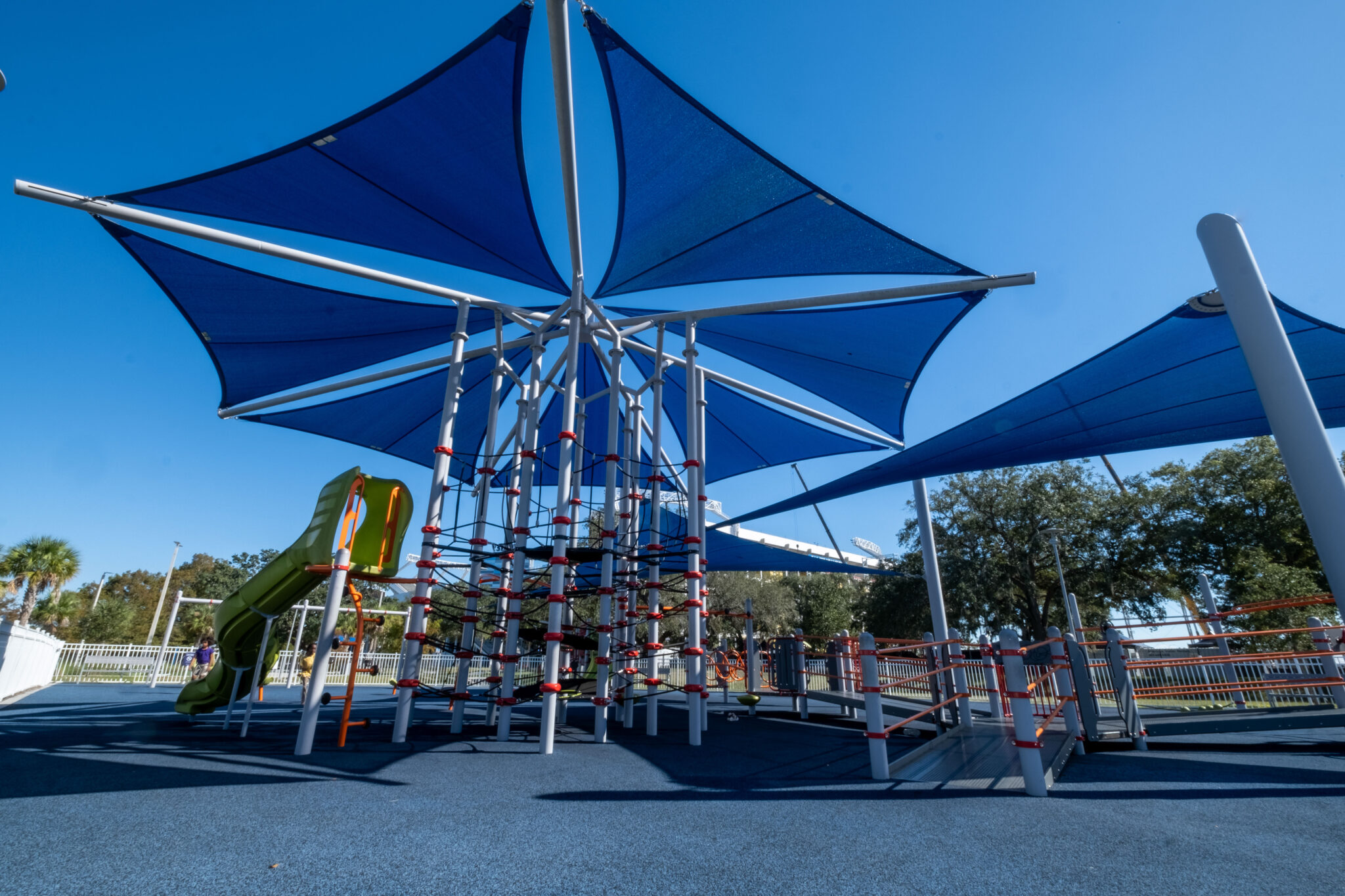 The playground is honestly top-tier. It’s an inclusive play area, which basically means it’s designed so kids of all abilities can actually play together without barriers. That’s a big deal. Then you’ve got the splash pad, which is a total lifesaver during those brutal Florida July afternoons when the humidity feels like a wet blanket.